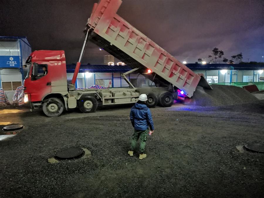 為全力沖刺四季度,項目部實行“快馬加鞭、保質保量、人停機不停、晝夜料不停!”的搶工模式,在保證安全和質量的前提下,項目部全體成員搶抓施工黃金期,全力以赴推進項目建設。為加快項目建設,項目部反復討論研究制定了科學的施工計劃,合理安排人力物力。面對晚間要拉運回填土方和石料的問題,項目部采取人員輪流值班,料來人在,統(tǒng)一指揮的措施,做到合理配置堆放,減少二次運輸,提高工作效率。