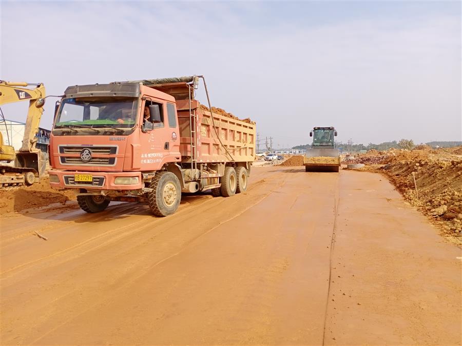 在白露村周邊支路路網工程-4標段(規(guī)劃路8)項目施工現場,挖掘機、土方運輸車、壓路機等工程機械在工地上連續(xù)運轉。工作人員加班加點作業(yè),充分利用施工黃金季節(jié),全面推進項目建設。