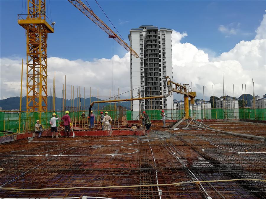 該工程于去年12月全面開(kāi)工,經(jīng)過(guò)參人員9個(gè)月的共同努力,目前主樓主體結(jié)構(gòu)實(shí)現(xiàn)封頂,項(xiàng)目將全面進(jìn)入砌體施工階段。