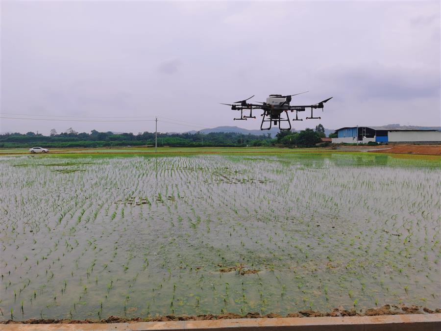 無(wú)人機(jī)正在施肥噴藥