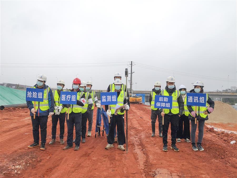 柳東片區(qū)在建市政項目、監(jiān)理單位等相關人員現場觀摩演練。