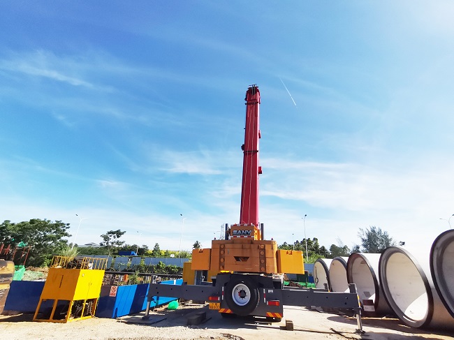 觀瀾湖北區(qū)區(qū)外排水工程(PG3 線)項(xiàng)目位于海南省海口市觀瀾湖北區(qū),主要建設(shè)內(nèi)容為布置4.79km長的排水箱涵。項(xiàng)目所處位置的地質(zhì)環(huán)境復(fù)雜,還緊鄰高速公路,工作井靠近魚塘和高壓電塔,地上管線多,給施工作業(yè)帶來重重困難和挑戰(zhàn)。為了保證施工質(zhì)量和建設(shè)效率,第三分公司邀請專家精心策劃施工方案、組建精英團(tuán)隊(duì)施工,項(xiàng)目團(tuán)隊(duì)提前規(guī)劃好了運(yùn)輸路線,并與交通部門緊密協(xié)調(diào),確保了各項(xiàng)準(zhǔn)備工作的周全,為項(xiàng)目建設(shè)順利進(jìn)行奠定了堅(jiān)實(shí)的基礎(chǔ)。