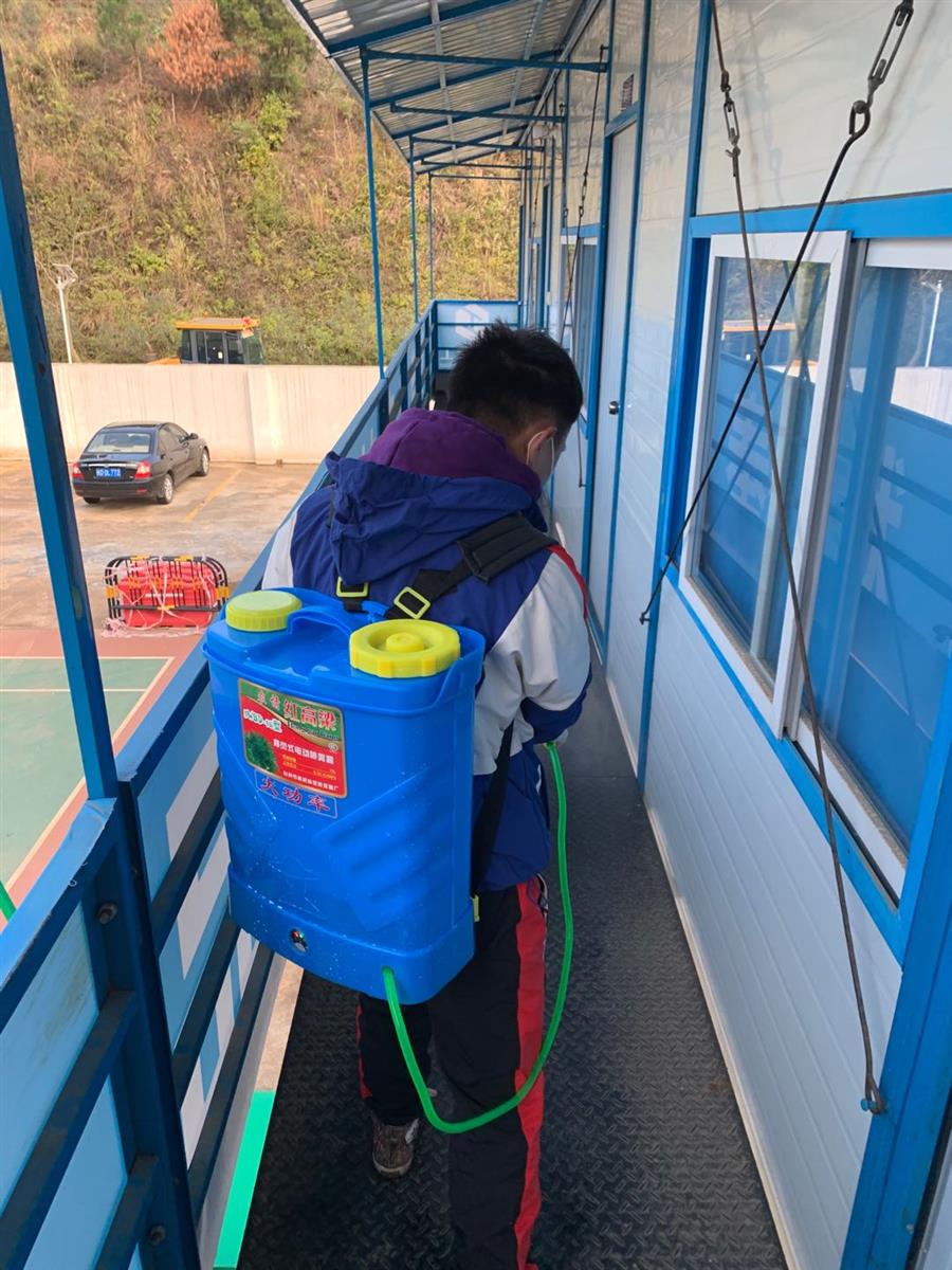 工作人員對項目部進行消毒