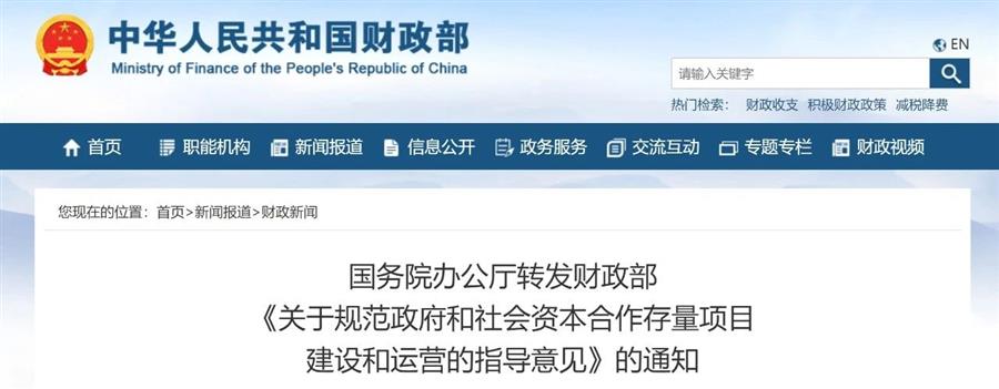 近日,國務(wù)院辦公廳轉(zhuǎn)發(fā)財政部《關(guān)于規(guī)范政府和社會資本合作存量項目建設(shè)和運營的指導意見》。作為我國基礎(chǔ)設(shè)施建設(shè)與公共服務(wù)領(lǐng)域的重要模式,政府和社會資本合作(PPP)項目已形成超10萬億元存量規(guī)模。隨著《指導意見》的落地,存量PPP項目迎來系統(tǒng)性規(guī)范方案,標志著在經(jīng)歷機制轉(zhuǎn)型后,PPP模式進入存量與增量協(xié)同發(fā)展的新階段。