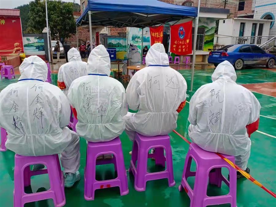 2月7日,阮斌在百色市田東縣印茶鎮(zhèn)那板村六內(nèi)屯青年志愿者隊(duì)參加志愿者工作。他每天除了協(xié)助醫(yī)務(wù)人員進(jìn)行核酸檢測,還要與其他志愿者在村口站崗,仔細(xì)檢查每一位村民的兩碼并測量體溫。遇到不配合工作的老人,他還會(huì)耐心解釋當(dāng)前疫情防控政策,勸說他們不要離鄉(xiāng)走動(dòng),配合防疫工作人員做好疫情防控工作。不站崗時(shí),阮斌會(huì)和其他青年志愿者一起上門宣傳疫情防護(hù)知識(shí),幫助村民做核酸檢測前的信息錄入。有些老人不會(huì)使用手機(jī),阮斌便耐心將操作流程演示給老人看,再讓老人自行操作一次,遇到老人忘記操作的步驟時(shí),阮斌會(huì)一次又一次地演示,直到老人可以記住全部操作流程。
