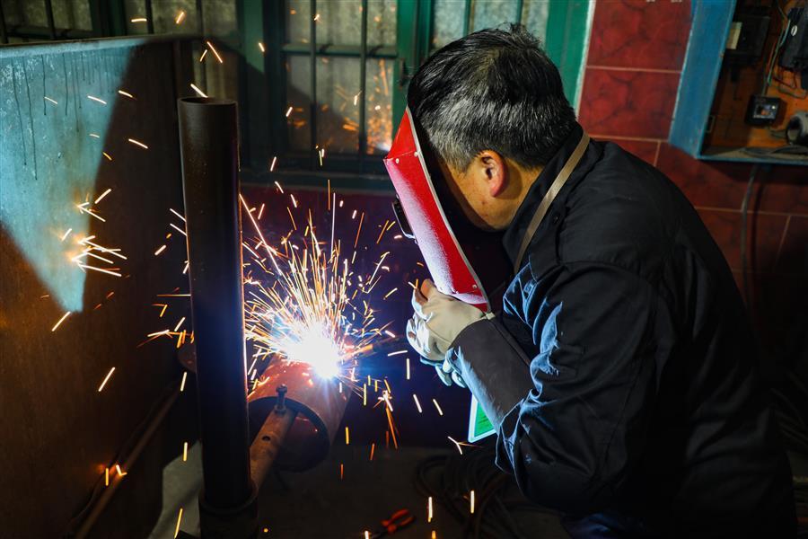 比賽開始!參賽選手各就各位,戴好電焊面罩與手套,拿起焊槍,熟練地開始焊接作業(yè)。
